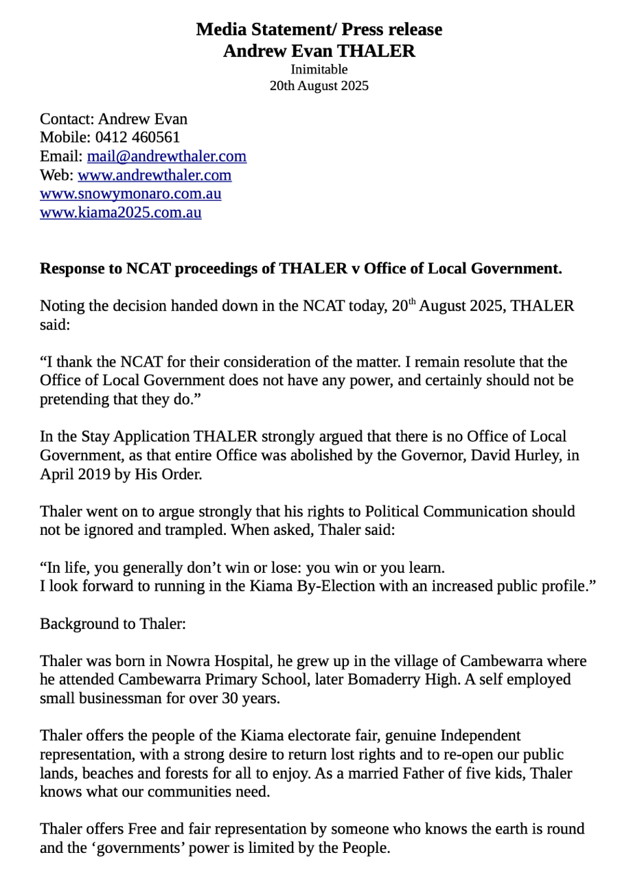Thaler Introduction #Kiama Meet-the-Candidates September 2025